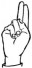 На ћирилици написано ЕВГЕНИЈЕ БОГДАНОВИЋ састоји се из 18 слова [?]. Исписано ћириличном једноручном азбуком за глувонеме: